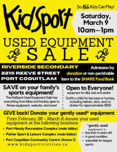 So many kids, so many sports! Looking for some good used sports equipment? Check out the Kidsport Used Equipment Sale, a few minutes from the Port Coquitlam arenas.